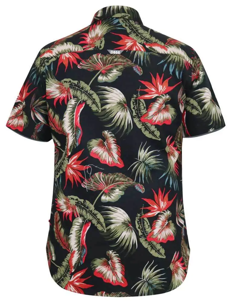 Sort kortærmet skjorte med flerfarvet Hawaii print (TALL) - D555