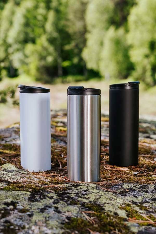 Stor stålgrå termokop i stål der rummer 0,4L.