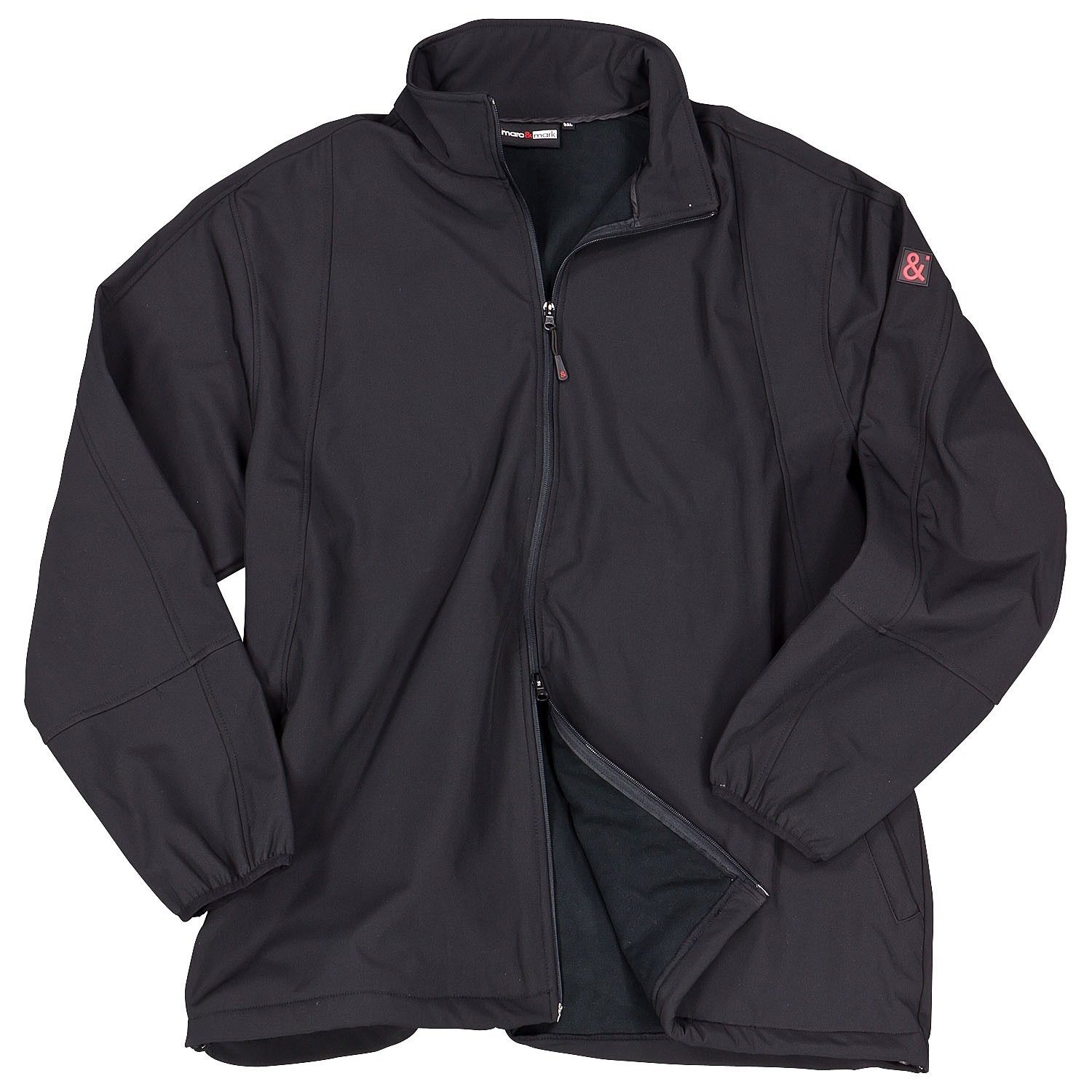 En tynd og let sort softshell jakke i store størrelser. Softshell jakken er vandafvisende, vindtæt og åndbar og så har den tapede sømme.