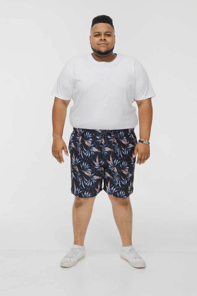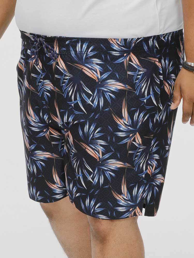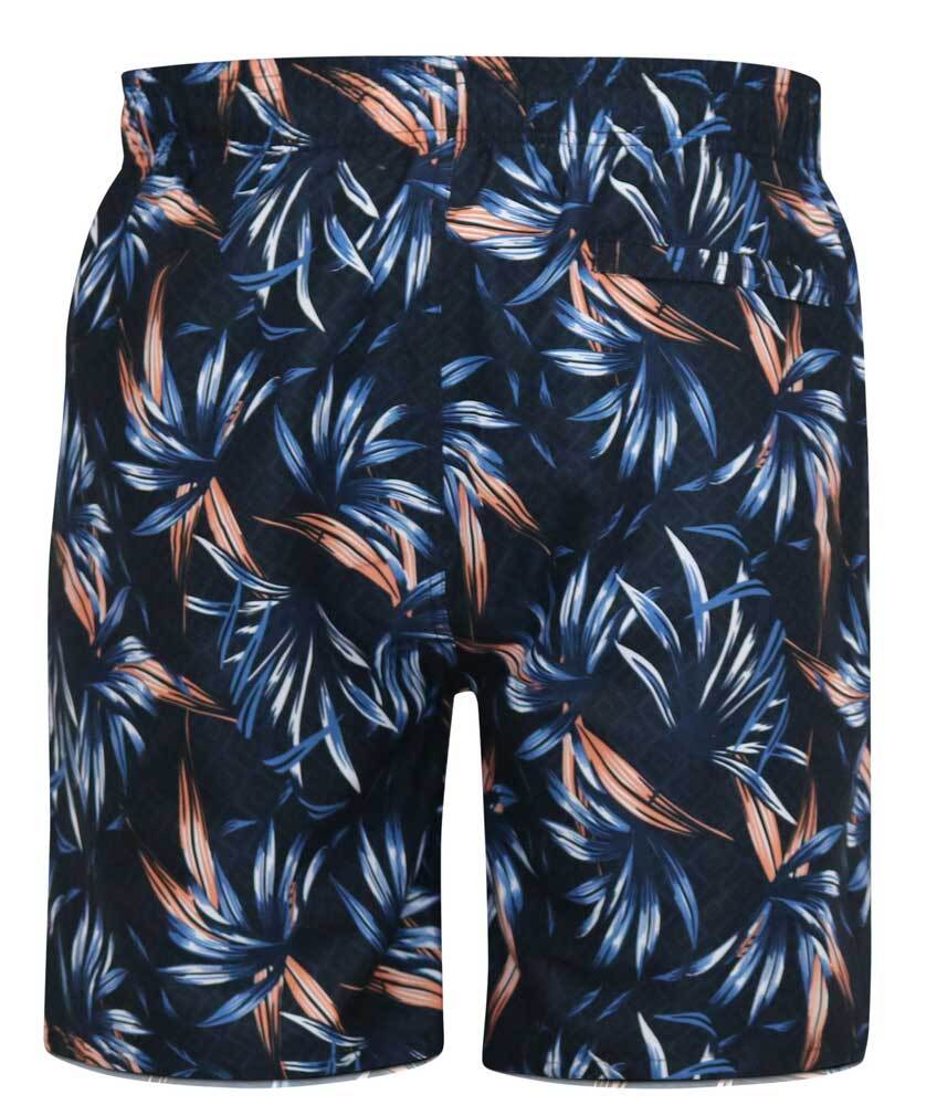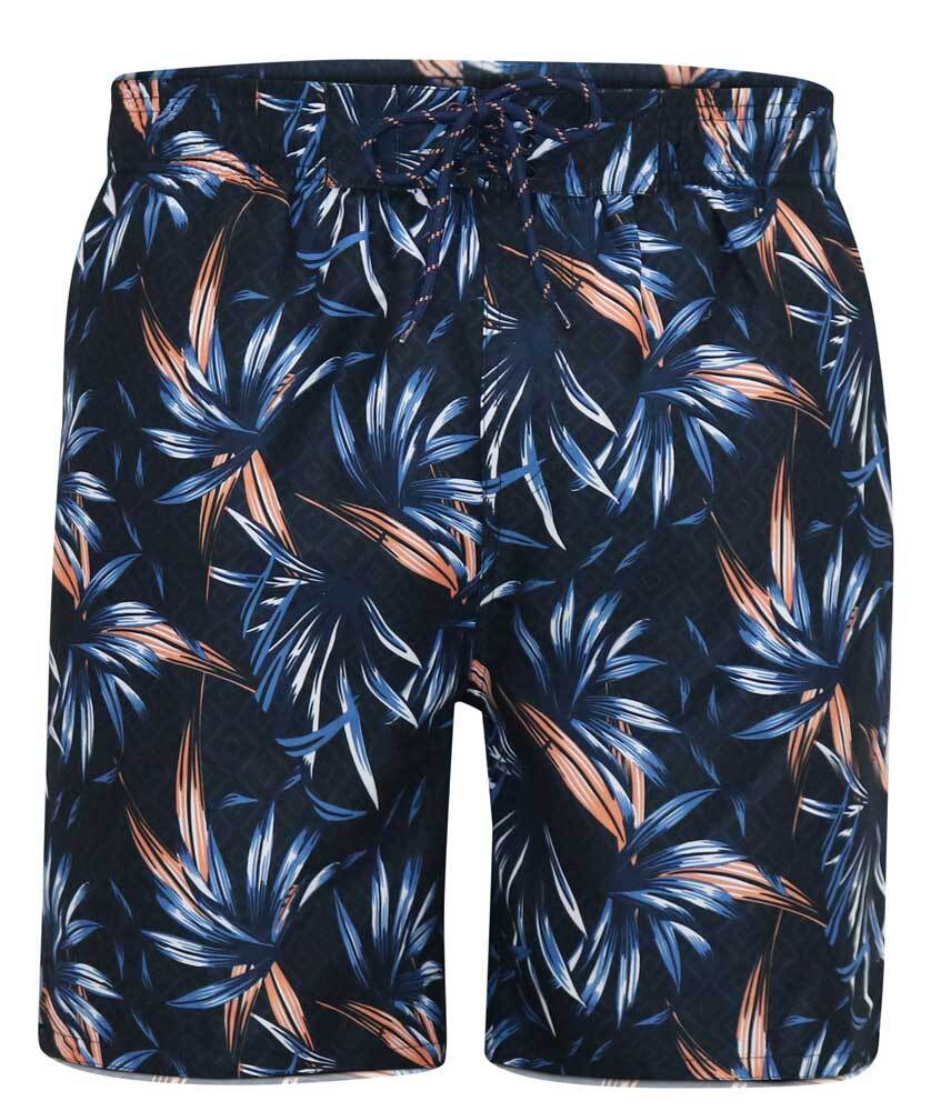 Disse stilfulde shorts er fremstillet med et iøjnefaldende hawaiiansk print i marineblå og livlige blå og orange nuancer.