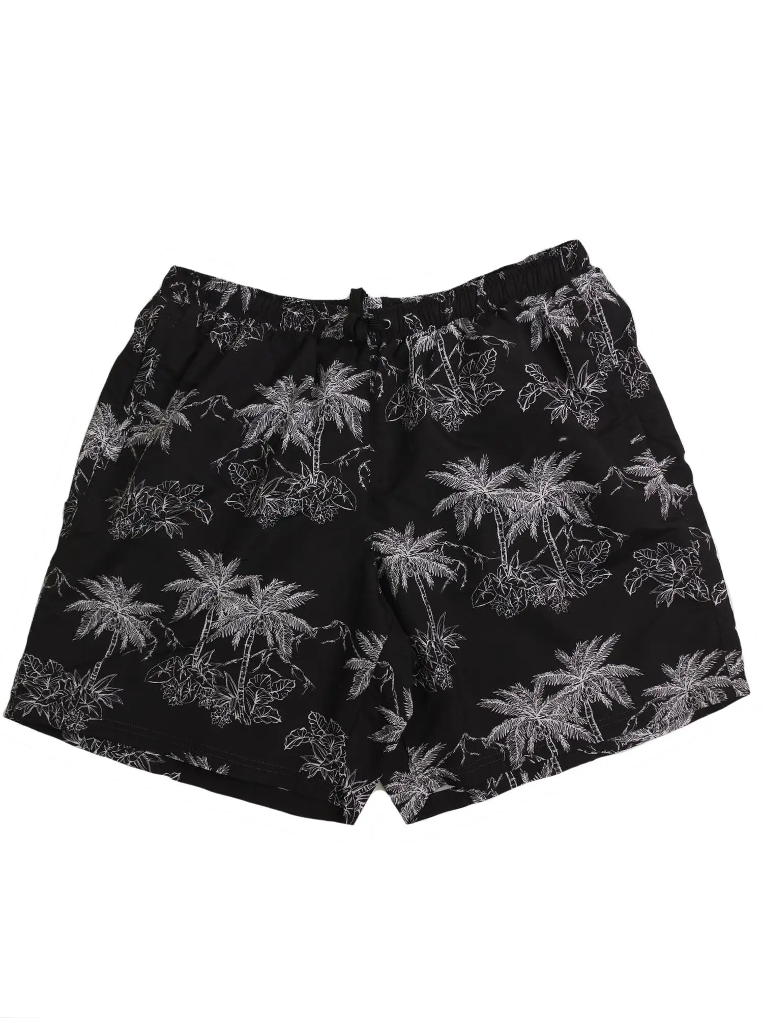 Sorte badeshorts m. hvidt palme print - Abraxas