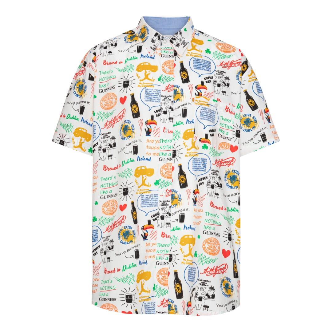 Her er skjorten, der sætter farve på dagen. Den er lavet i 100% bomuld, hvilket giver en let og behagelig fornemmelse mod huden – ideel til sommerens varme. Designet er sprudlende og legende med et miks af farverige grafiske print, sjove citater og små figurer, som tilsammen skaber et unikt og iøjnefaldende udtryk.