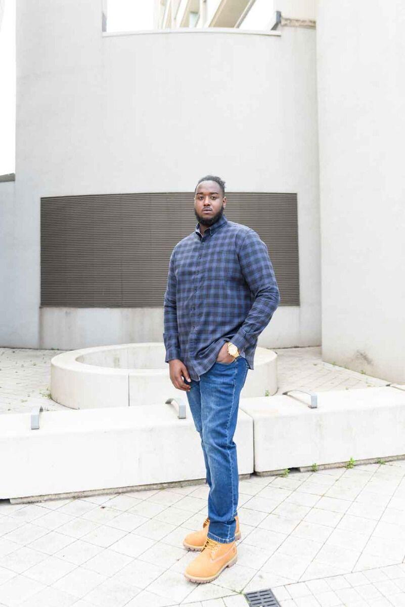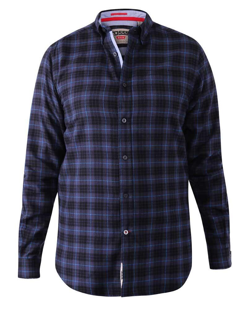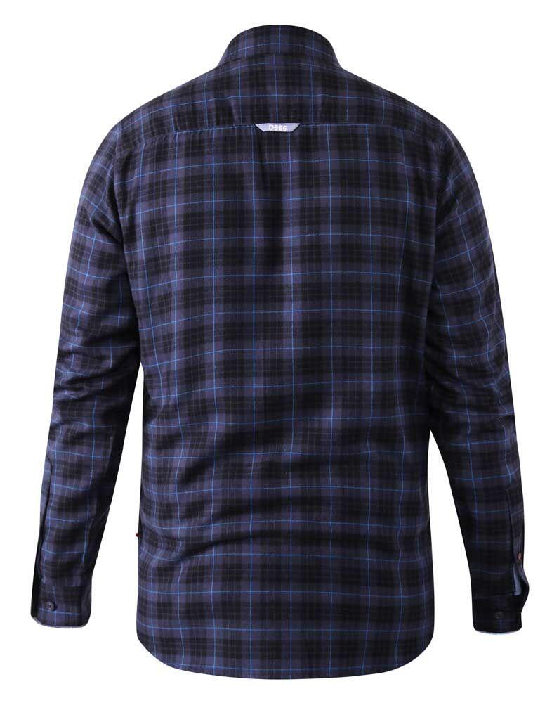 Blå/sort button-down skovmandsskjorte med ternet mønster og lange ærmer fra D555. Skjorten har en brystlomme i venstre side.