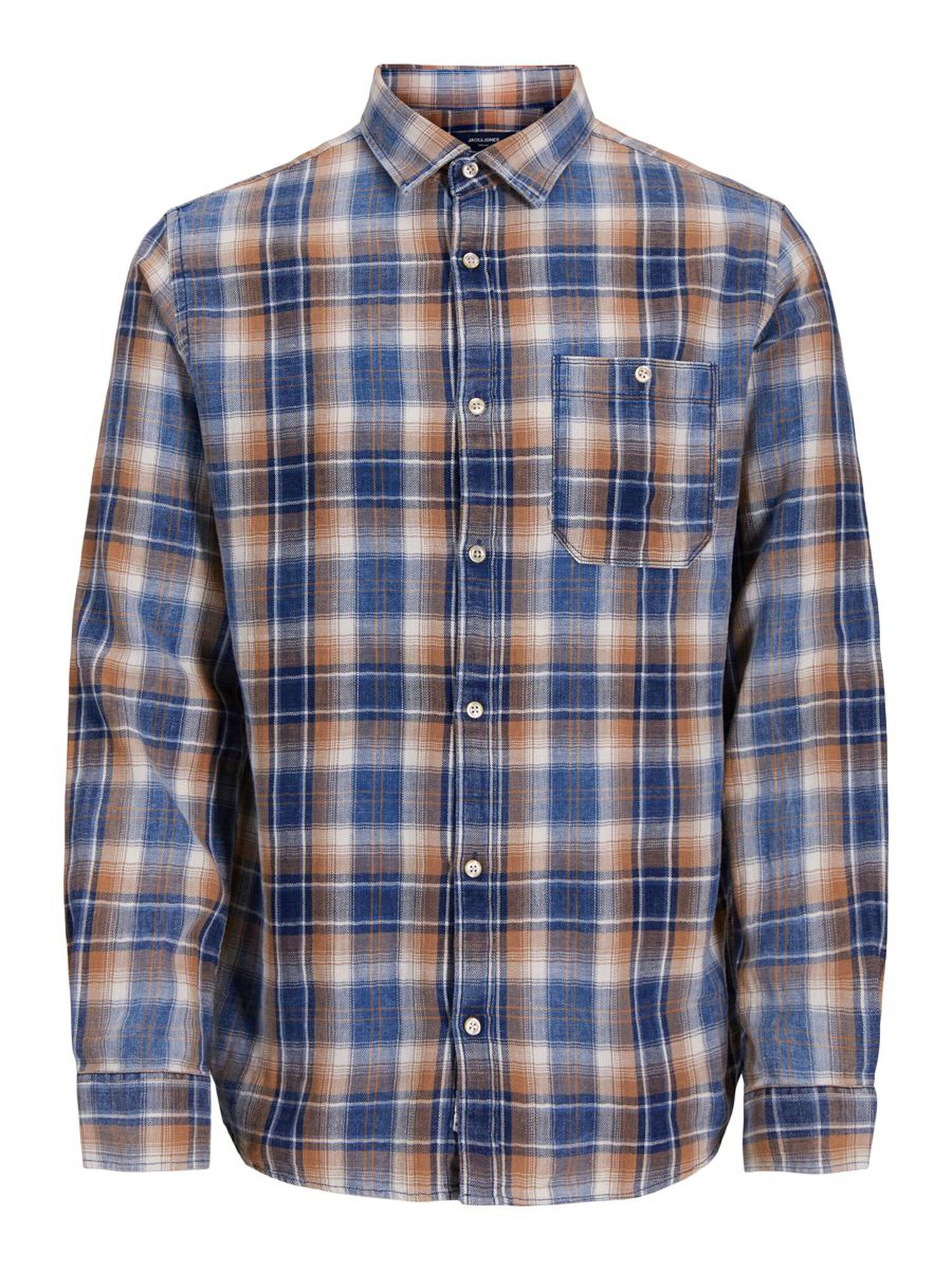 Blød og let skjorte i flere farver fra Jack & Jones. Skjorten har et ternet mønster i denim-blå, brun og off-white.