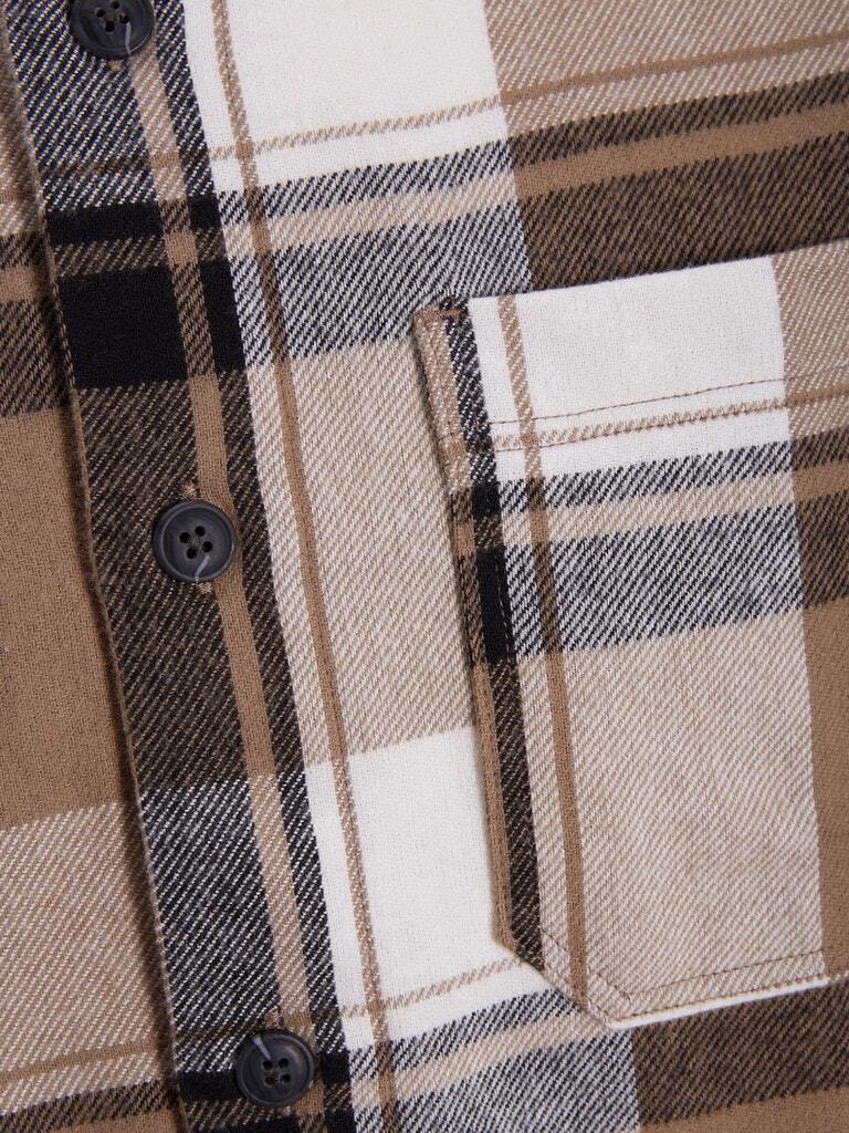 Brun ternet skjorte i kraftig flannel kvalitet fra Jack & Jones. Skjorten er dejlig blød og den har to brystlommer.