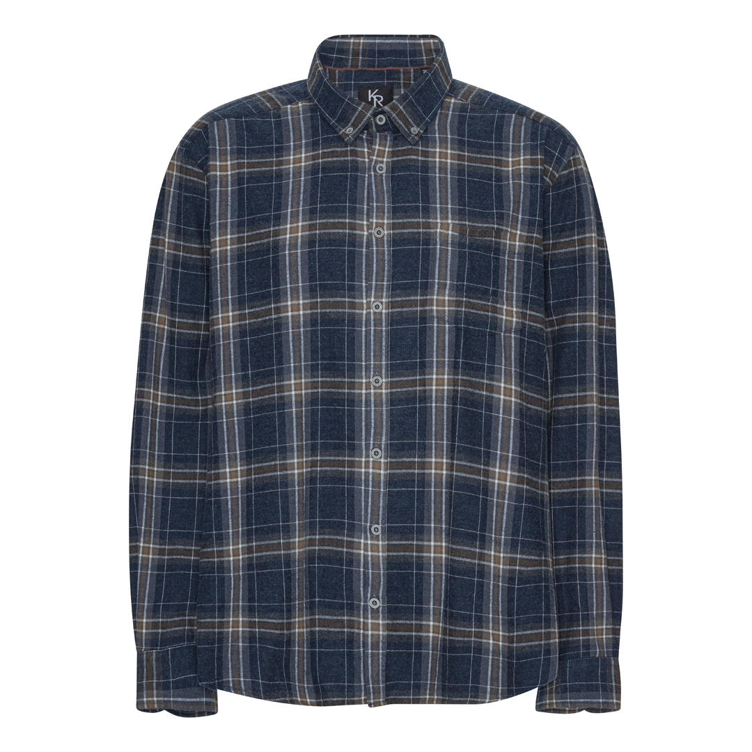 Denne klassiske langærmede skovmandsskjorte fra King`s Road er fremstillet i en heavy flannel ternet bomuldskvalitet i en mørk navyblå farve.