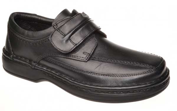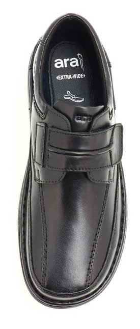 Klassisk sko til herrer, fra Ara, med en bred velcrorem, så skoen næsten kan åbnes helt op og bliver nem at træde ned i.