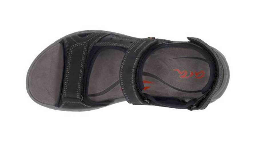 Sorte sandaler fra Ara med velcroremme. Sandalerne er ideelle til dig der går lange ture og ønsker en komfortabel sko til din fod. Sandalerne er foret med neopren, som er fleksibelt og har en god isoleringsevne. Dette forhindrer irritationspunkter og gnidninger.