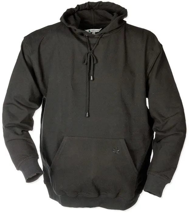 Smart hættetrøje i sweat-kvalitet fra Ahorn Sportswear. Denne sweatshirt har en kængurulomme foran, i hætten er der en sort regulærbar snor og så er der rib-kant på ærmerne og i bunden af sweatshirten.