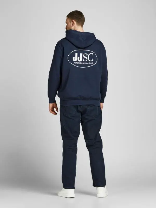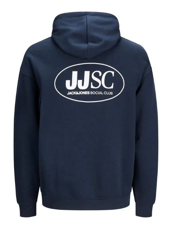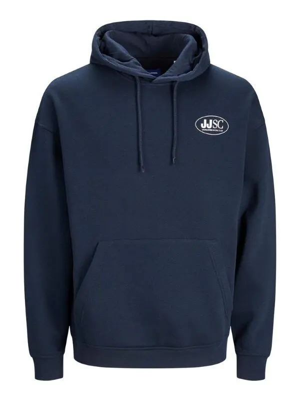 Navyblå hættetrøje m. kængurulomme og tryk - Jack & Jones