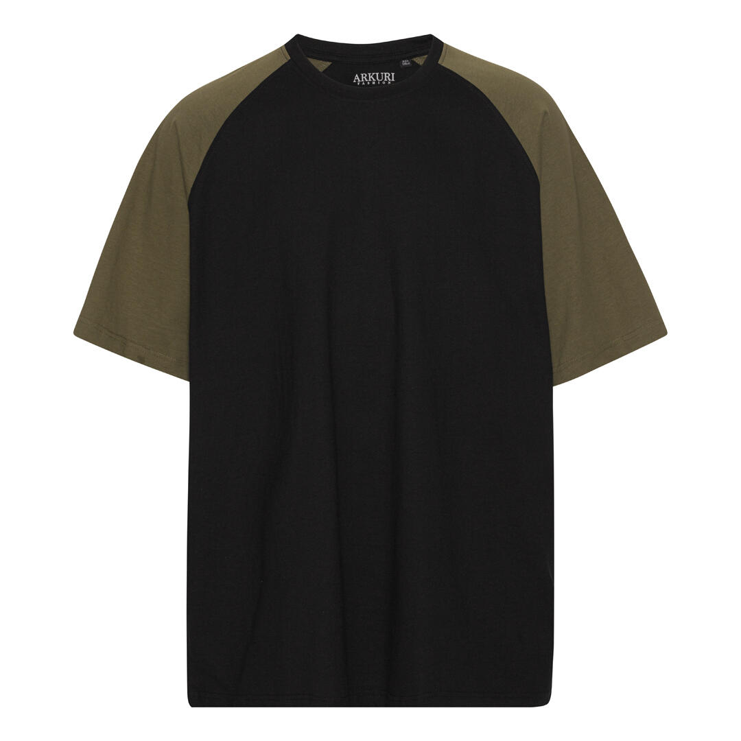 Sort T-shirt med kontrast armygrønne raglanærmer - ARKURI Fashion