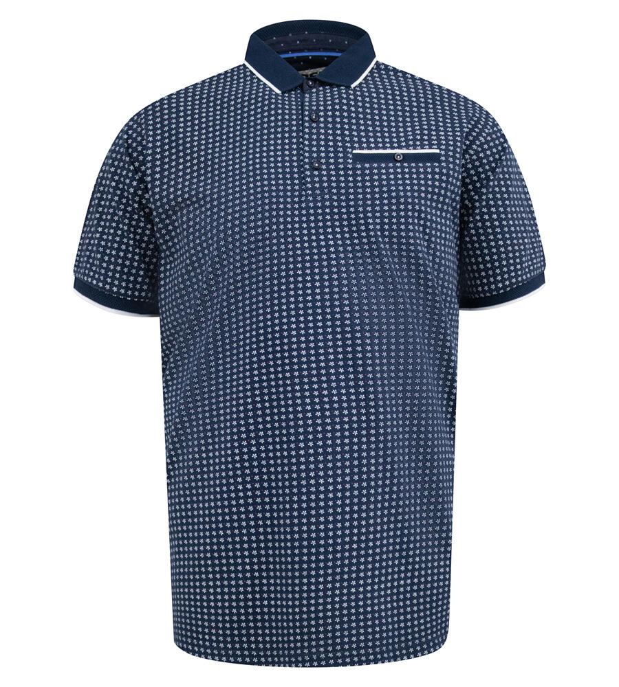 Navyblå mønstret polo med brystlomme og kontrastdetaljer - D555
