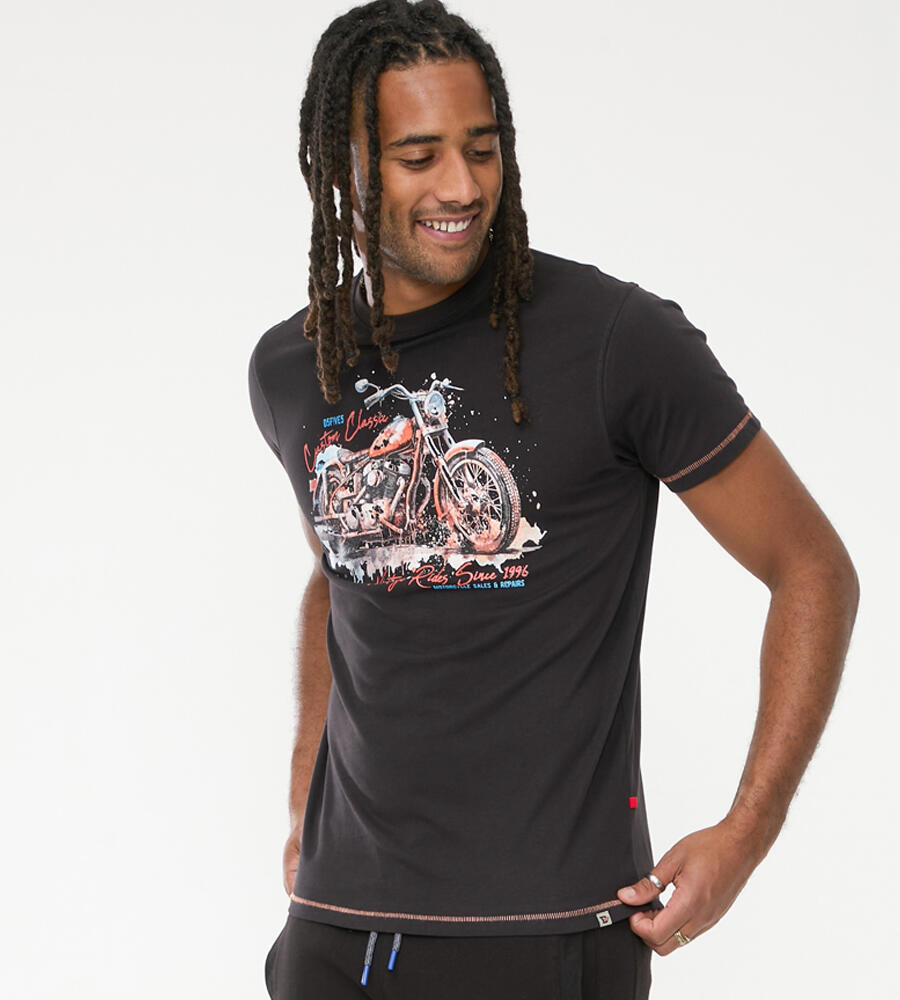 Sort T-shirt med "custom classic motorcykel" print - D555