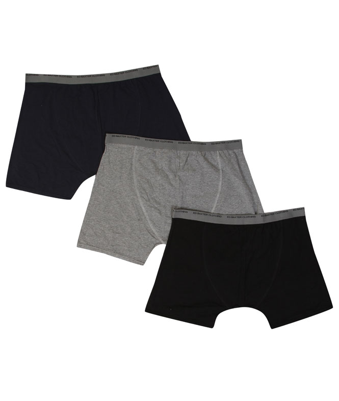 Pakning: 3 stk. Ed Baxter Trunks (1 stk. navyblå + 1 stk. sort + 1 stk. grå melange).