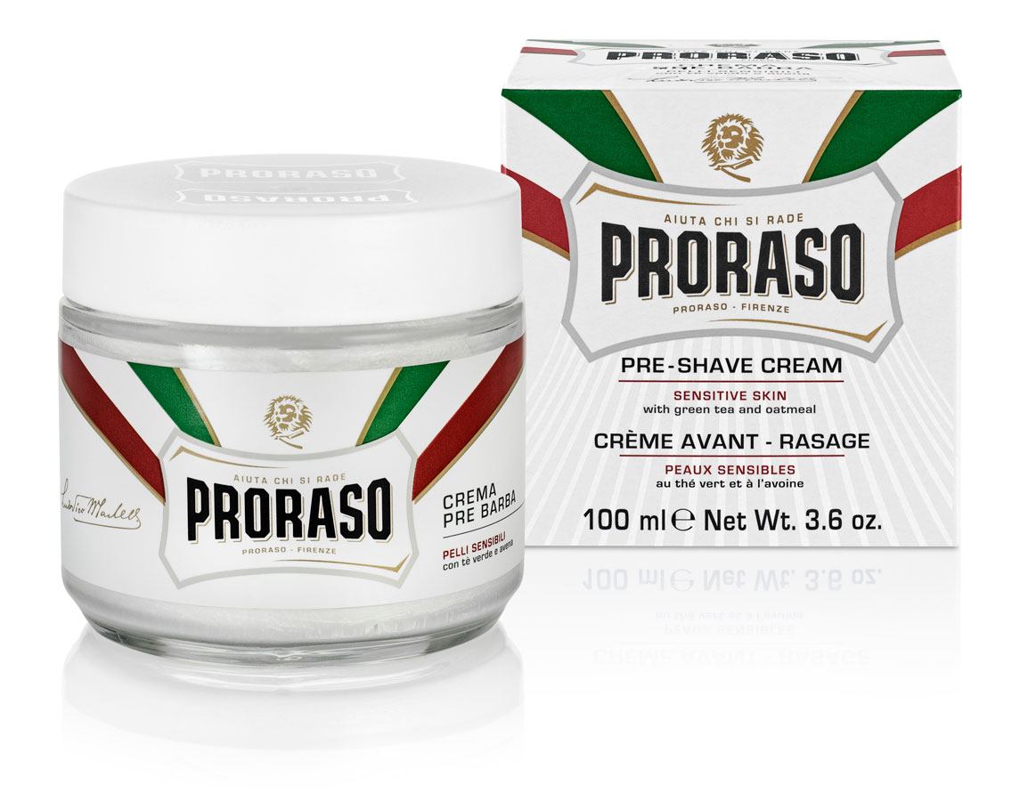Italienske Proraso har lavet denne Preshave creme, som er en del af deres Sensitiv-serie. Serien er fremstillet til os mænd, der har en tildens til Razor burn, rødme og irriteret hud efter endt barbering.