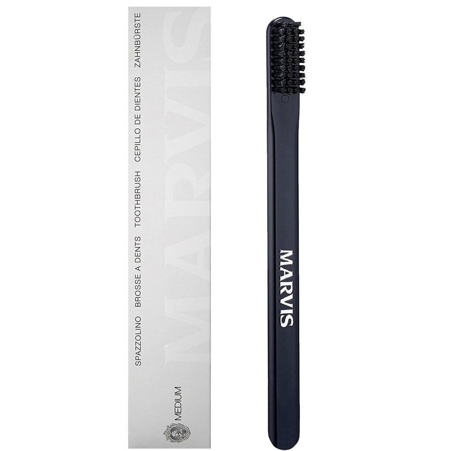 Tandbørsten fra Marvis er minimalistisk, enkel og stilfuld og bringer god stil ind på dit badeværelse. Den passer også godt til rejsen og i en toilettaske, idet der følger en børsteskytter med til børsterne.