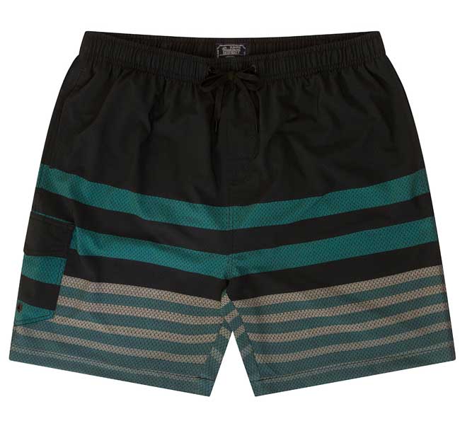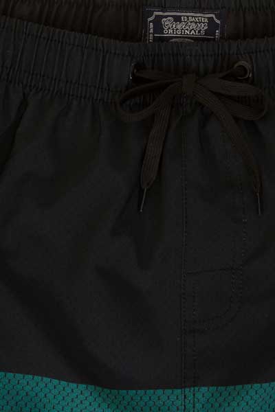Lette badeshorts fra Ed Baxter, der falder naturligt indtil kroppen. De er navy i grundfarven. På det nederste stykke har shortsene striber i blå og grå.